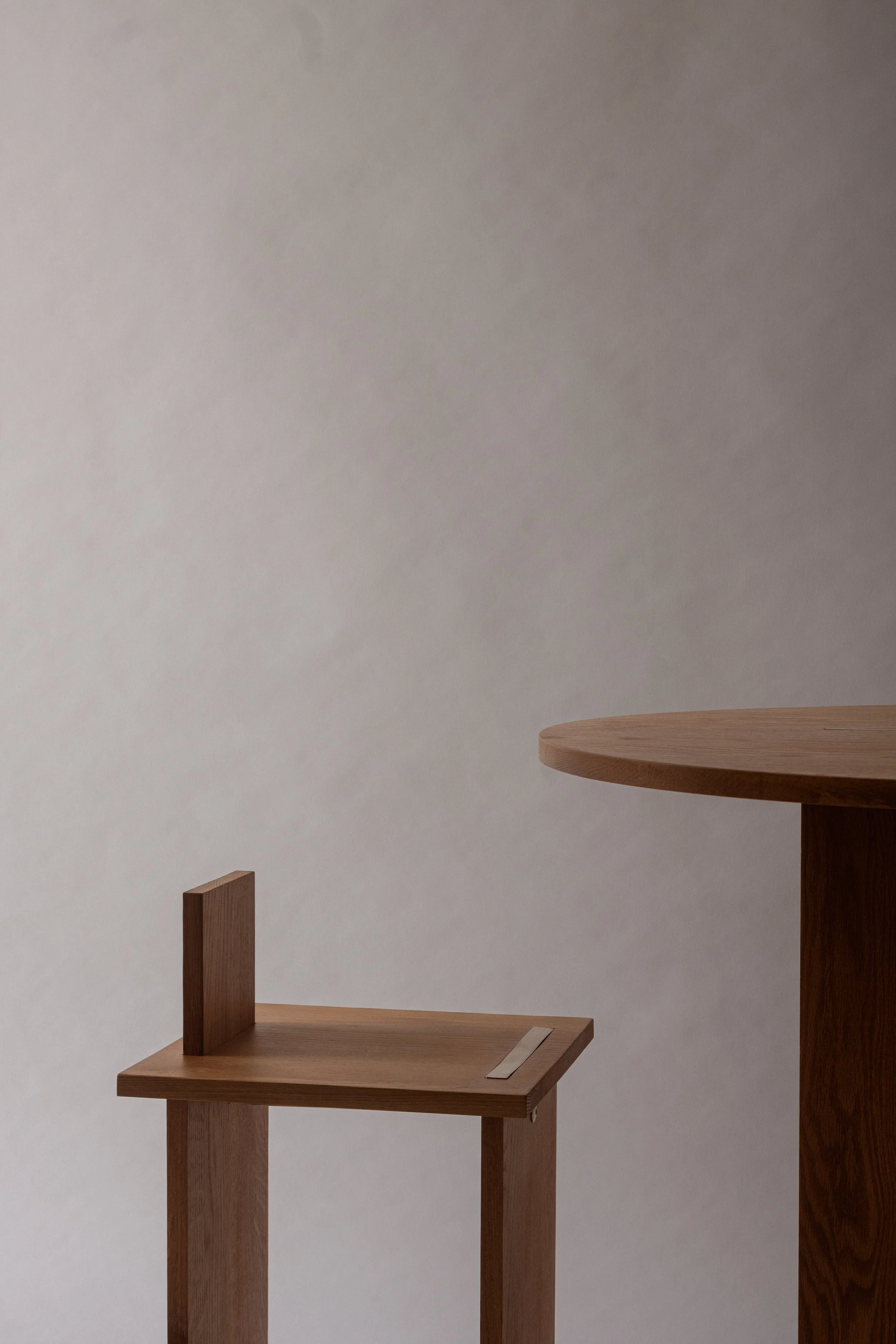 From this fracture between past and future emerges Anàphora — from the Greek anáphorá, meaning “to carry back with oneself.” It speaks of transformation, of the human ability to adapt and preserve what is essential. The collection unfolds through a series of essential elements — a table, a stool, a lamp, a mirror — alongside ceramic vessels, sculptural forms, and ritual objects, each designed to be assembled, disassembled, and carried. Their minimalist forms recall a monastic simplicity, while the meeting of wood and metal becomes a symbol of orientation and spiritual grounding.